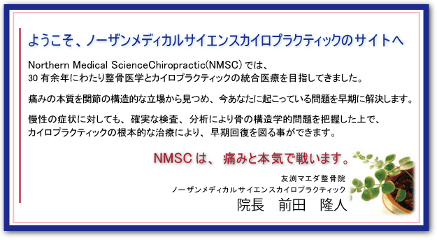 NMSCは、整骨医学とカイロプラクティックの統合医療を目指し、痛みと本気で戦います。